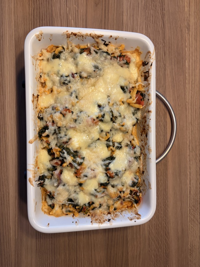 Mit Mozzarella und Parmesan überbacken lassen. Nochmal 10 Minuten Käse schmelzen lassen.